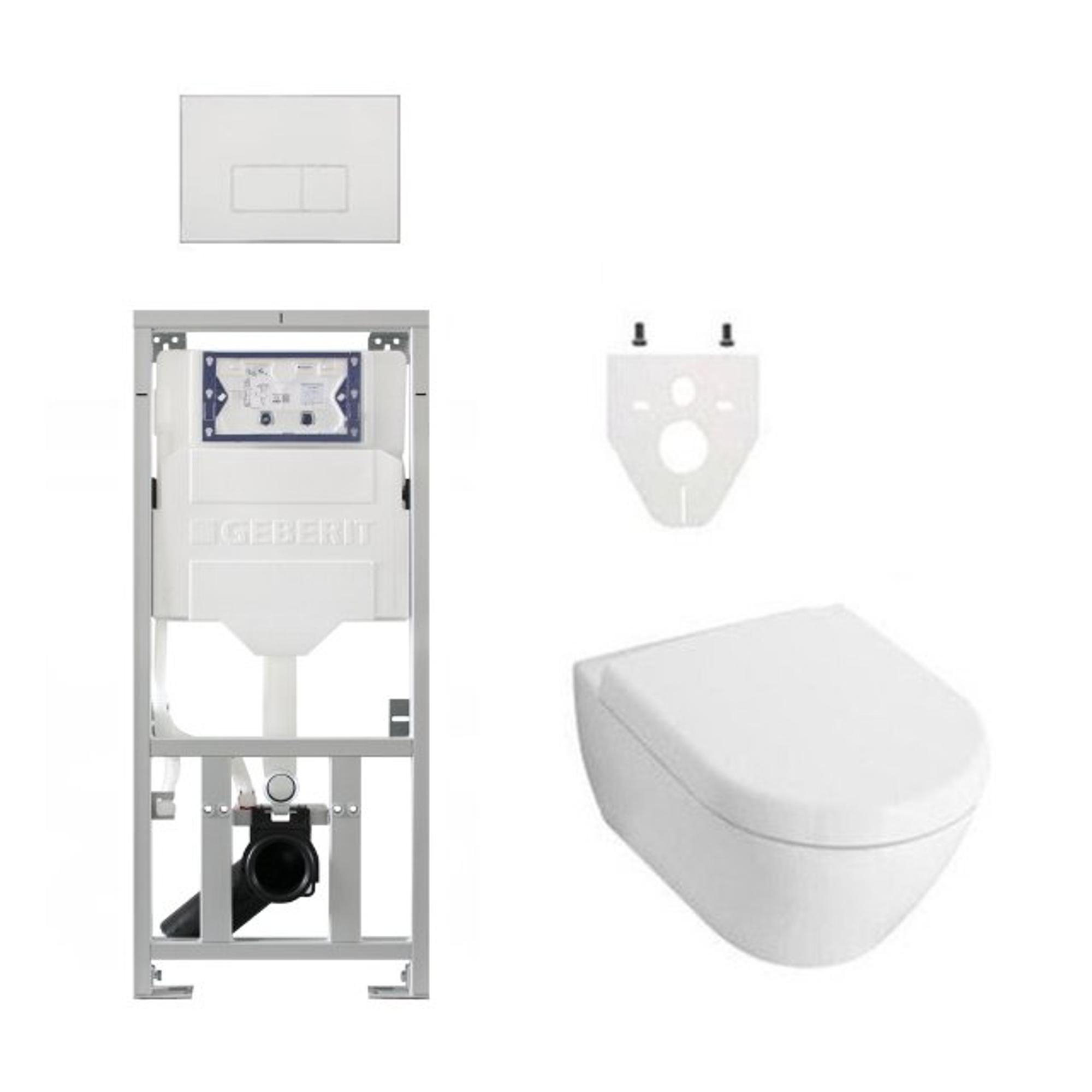 Villeroy Boch Subway 2.0 DirectFlush Toiletset - geberit reservoir - bedieningsplaat rechthoekige knoppen - softclose - wit