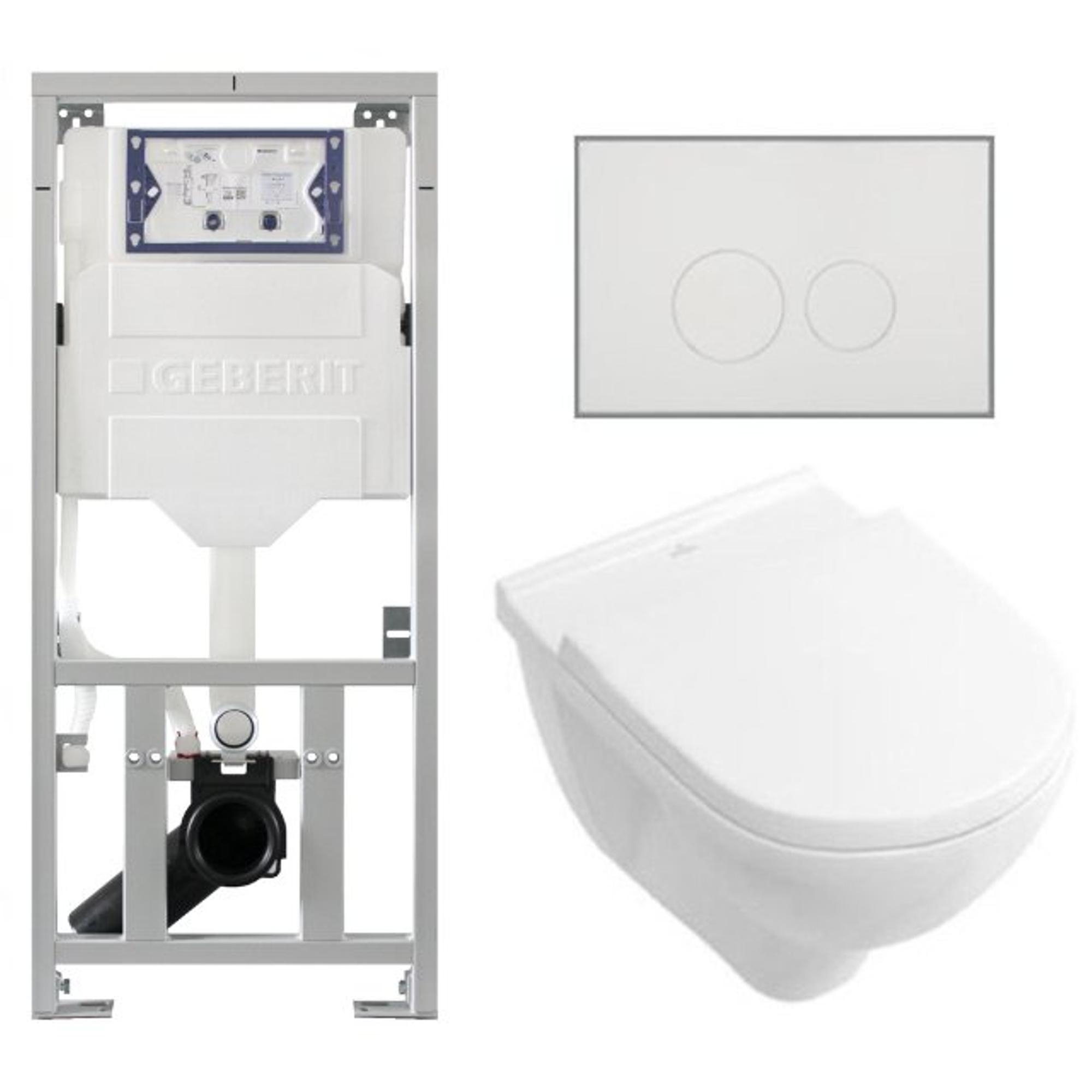 Villeroy & Boch O.novo toiletset met Geberit inbouwreservoir met diepspoel wandcloset wit softclose zitting en bedieningsplaat met ronde knoppen wit