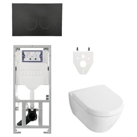Villeroy Boch Subway 2.0 DirectFlush Toiletset - geberit reservoir - bedieningsplaat ronde knoppen - softclose - mat zwart
