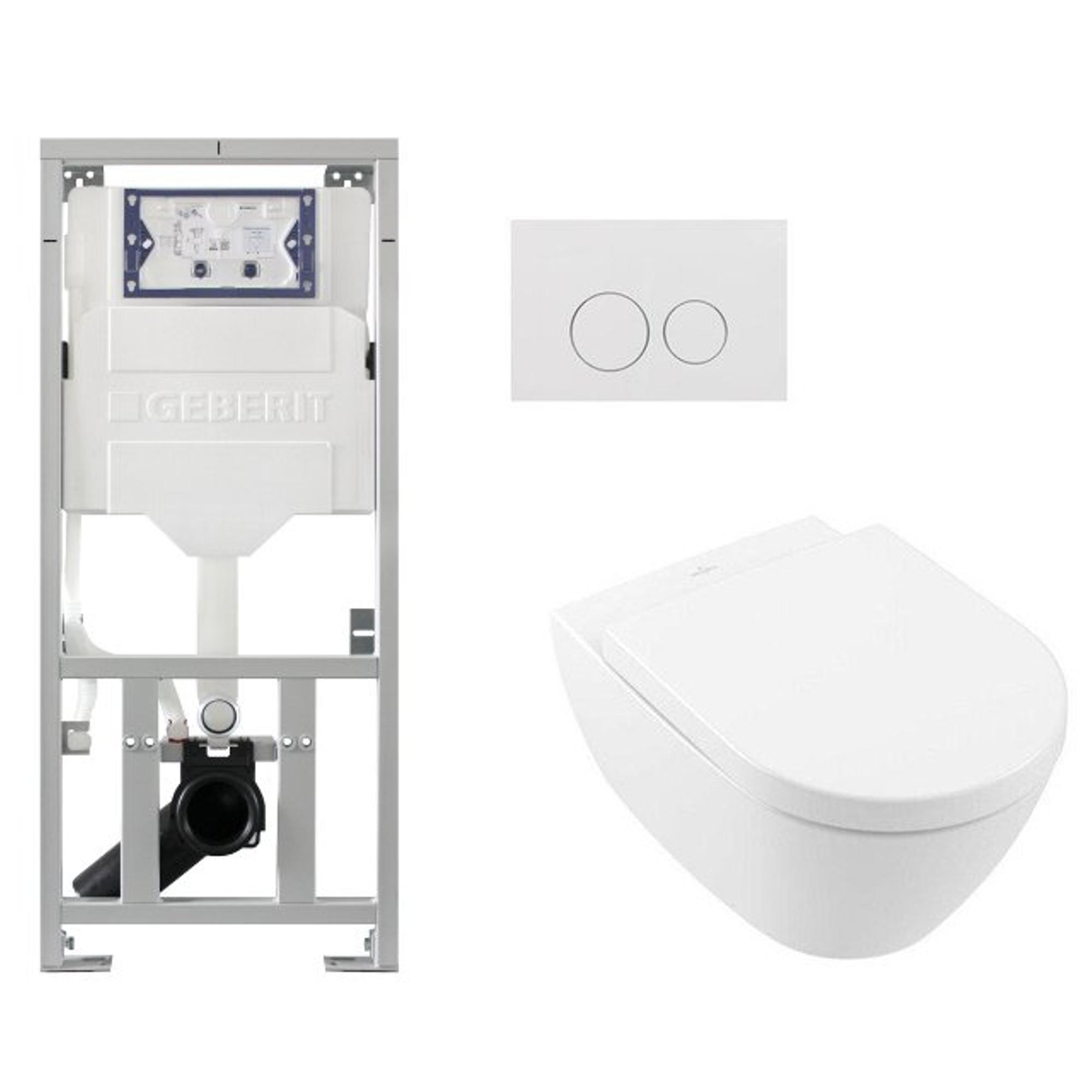 Villeroy Boch Subway 2.0 DirectFlush Toiletset - softclose - geberit reservoir - qeramiq bedieningsplaat ronde knoppen - wit