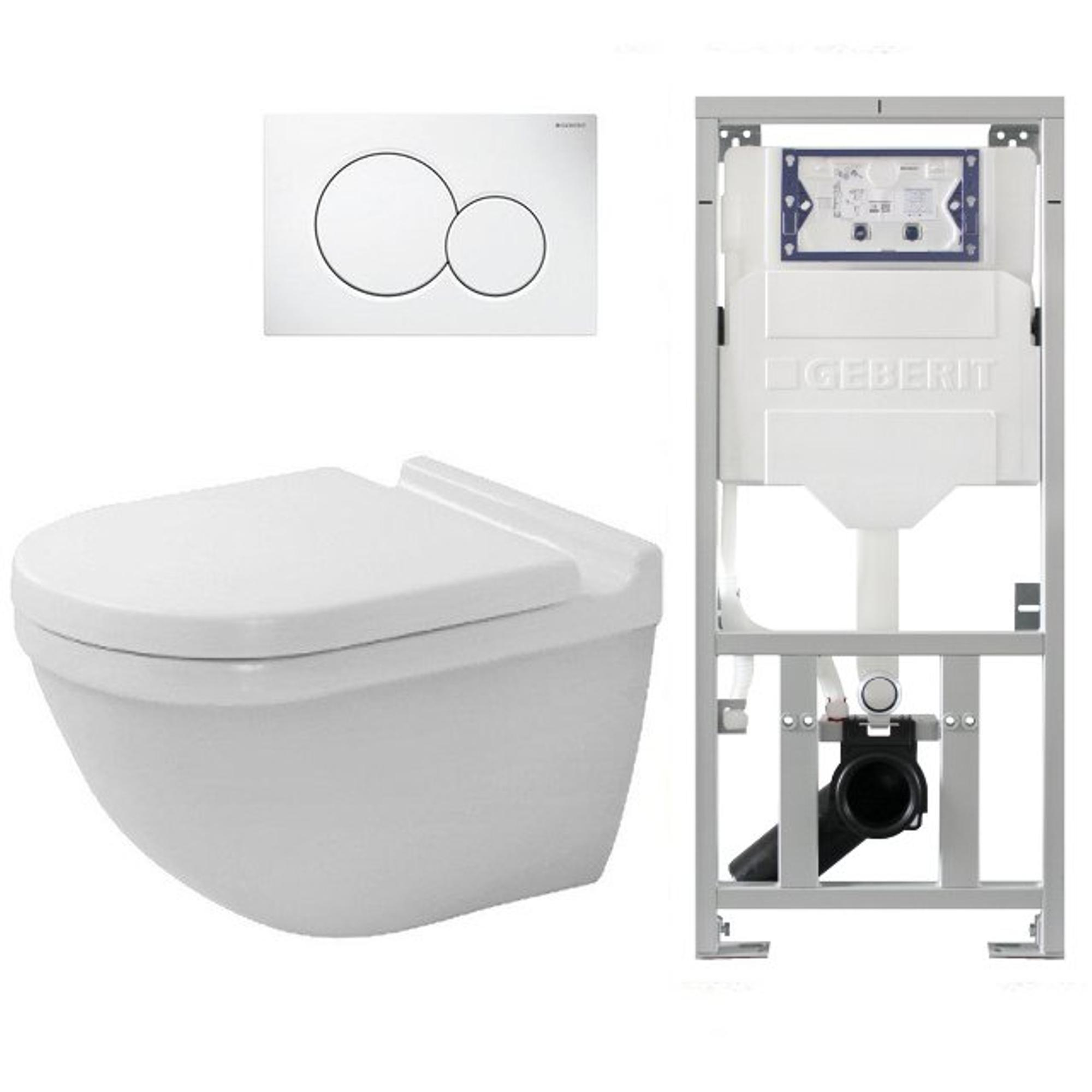 Duravit Starck 3 toiletset met Geberit inbouwreservoir toiletzitting met Saniclass softclose zitting en sigma01 bedieningsplaat wit