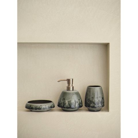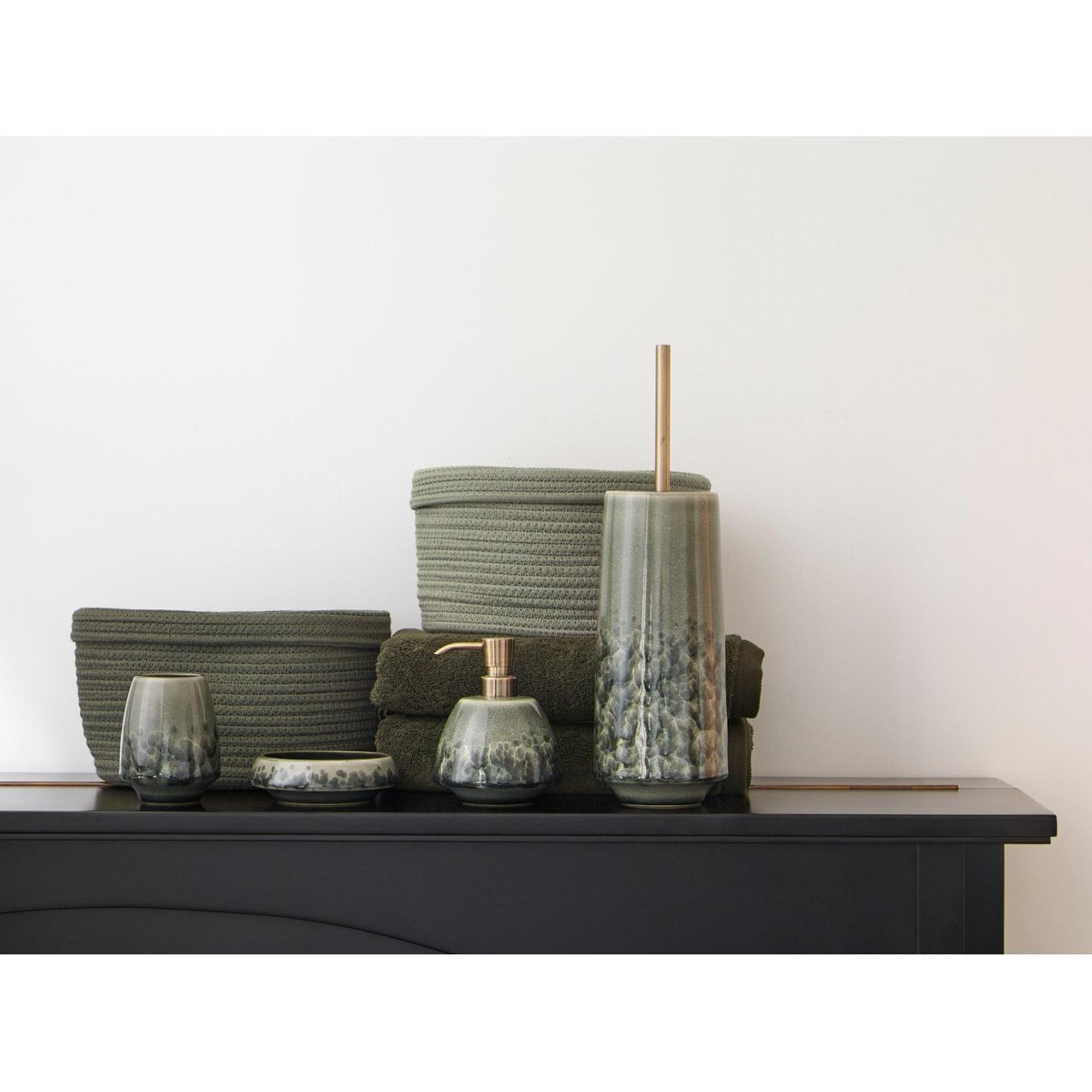 Door het gebruik van 100% aardewerk en het met de hand aangebrachte glazuur heeft deze accessoire een levendige, bijna organische uitstraling. De Taiga-kleur, een diepe groentint, doet denken aan een dicht bos en brengt letterlijk een vleugje natuur in je badkamer. Omdat het glazuur met de hand wordt aangebracht, is geen enkele dispenser precies hetzelfde: kleine kleur- en structuurverschillen geven juist die authentieke, luxe look die je niet snel in massaproducten terugziet. Hierdoor voelt je badkamer minder klinisch aan en ontstaat er een warm geheel, zeker wanneer je deze dispenser combineert met andere accessoires in vergelijkbare materialen of kleuren.