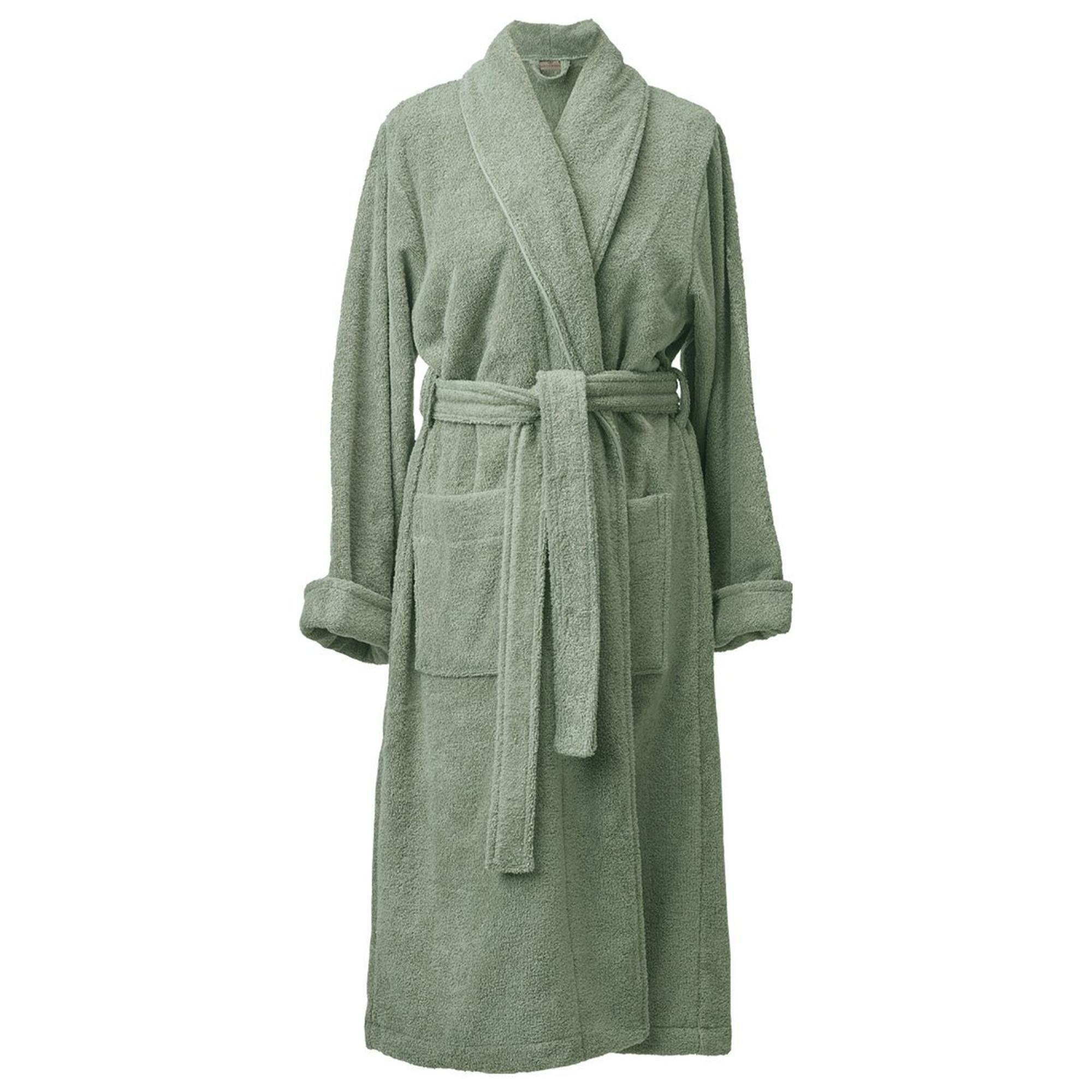 Deze badjas combineert een tijdloos design met een prachtige, subtiele glans die ontstaat door het gebruik van Egyptisch gekamd katoen. De kleur Thyme geeft een frisse, natuurlijke uitstraling die moeiteloos past in elke badkamerstijl. Dankzij de regular fit valt de badjas mooi en comfortabel, zonder te strak of te los te zitten. Zo zie je er altijd verzorgd uit, zelfs in je meest ontspannen momenten. Met deze badjas voeg je een vleugje luxe toe aan je dagelijkse routine, waardoor je je elke dag weer bijzonder voelt.