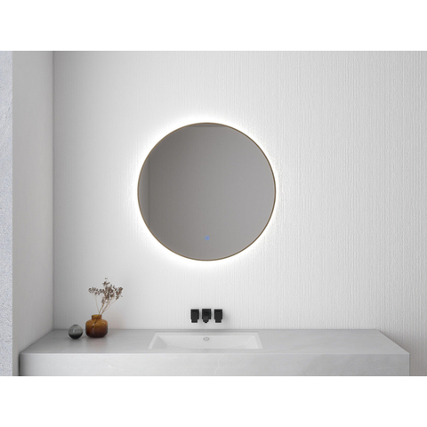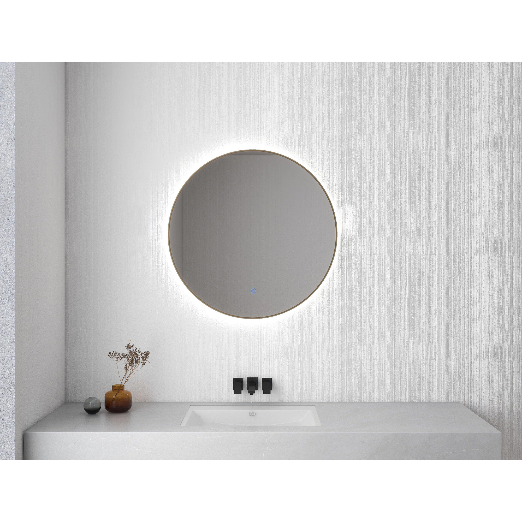 Wiesbaden Novi spiegel rond met LED, dimbaar 80 cm geborsteld messing