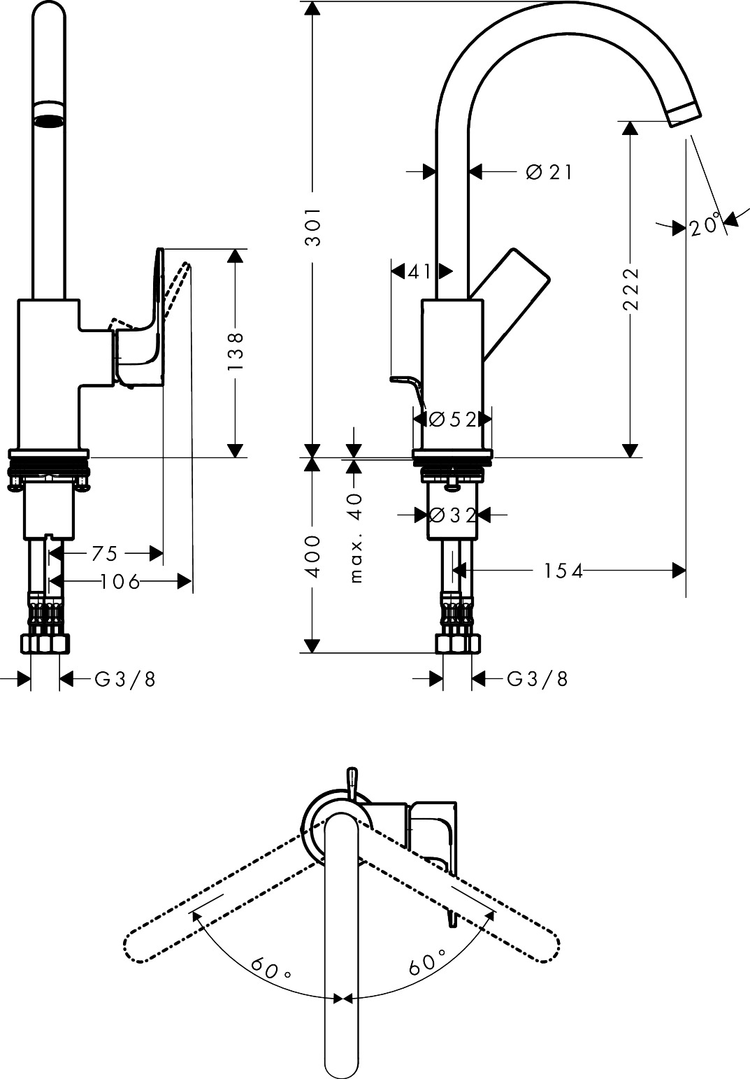 - ComfortZone 210 mm: ruime afstand tussen kraan en wastafel