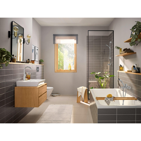 De draaibare uitloop met een bereik van 120 graden geeft je extra bewegingsvrijheid bij het gebruik van de wastafel. Dankzij de ComfortZone van 210 mm is er voldoende ruimte tussen kraan en wastafel, wat het wassen van handen of vullen van een emmer comfortabel maakt. De geïntegreerde pop-up afvoergarnituur bedien je moeiteloos met één hand. Daarnaast helpt de kraan water te besparen door de maximale doorstroming te beperken tot 5 liter per minuut, zonder dat je inlevert op een volle, zachte waterstraal.