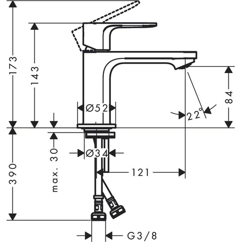 Hansgrohe Rebris E 1-gats wastafelkraan 80 coolstart z. waste chroom