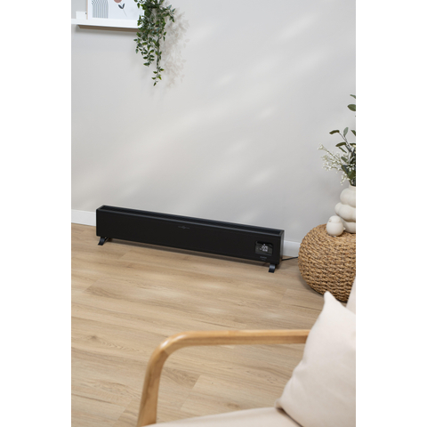 Zoek je een slanke, stille elektrische verwarming die je woonkamer, slaapkamer of werkkamer snel comfortabel warm maakt, zonder dat hij de hele ruimte domineert? Deze lage convectorkachel is speciaal ontworpen om onder lage ramen of langs een lange wand te plaatsen, waardoor je de beschikbare ruimte optimaal benut. Dankzij het stevige kunststof- en metalen omkasting in een moderne zwarte kleur past hij mooi in moderne, industriële en minimalistische interieurs. De combinatie van krachtig vermogen, slimme bediening via WiFi en een nauwkeurige thermostaat maakt dit een zeer geschikte oplossing als bijverwarming of als hoofdverwarming in goed geïsoleerde ruimtes. Ideaal als je flexibel wilt verwarmen per kamer, energiezuiniger met je huis wilt omgaan en het prettig vindt om alles eenvoudig via je telefoon te kunnen regelen.