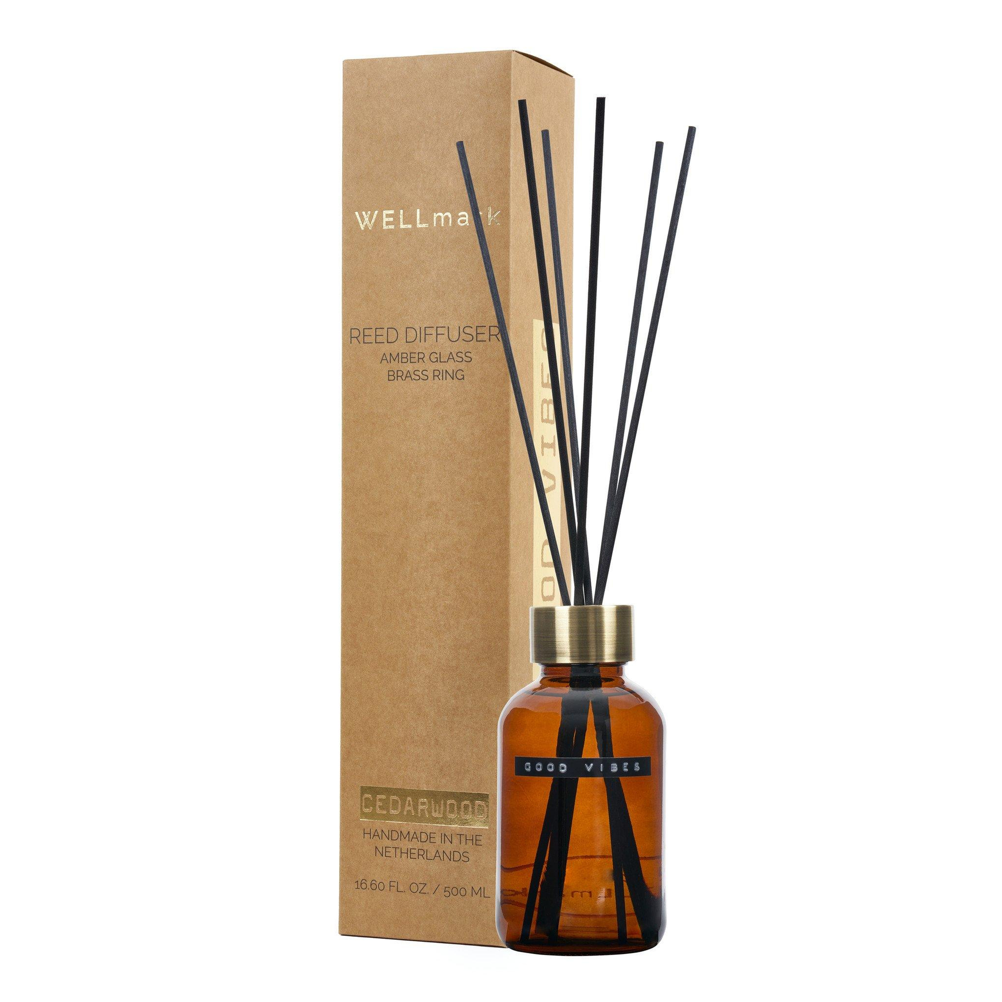 Wellmark Geurstokjes Maxi Bruin glas messing ring 500ml GOOD VIBES