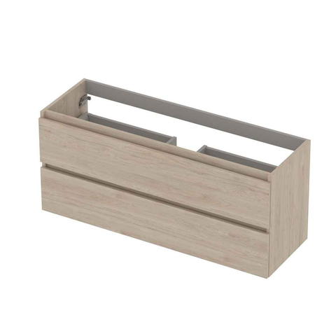 INK Wastafelonderkast - 120x40x52cm - 2 lades - greeploos - houten keerlijst - MFC Ivoor eiken