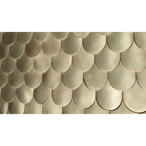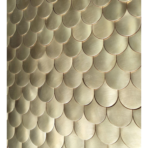 De visschubvorm geeft je wand direct een dynamisch en speels patroon dat mooi meeloopt met het licht in de ruimte. De combinatie van mat en glans in de goudtint zorgt voor diepte en nuance: vanuit elke hoek oogt de wand net even anders. Dit maakt het mozaïek perfect als accent achter een wastafelmeubel, als sierpaneel achter een dressoir of als decoratieve strook naast een spiegel. Door de gouden kleur sluit het prachtig aan bij populaire badkamer- en keukenstijlen zoals hotel chic, modern luxe en eigentijdse klassiek. Combineer het met zwarte kranen, marmerlook tegels of warme houttinten voor een rijk geheel.