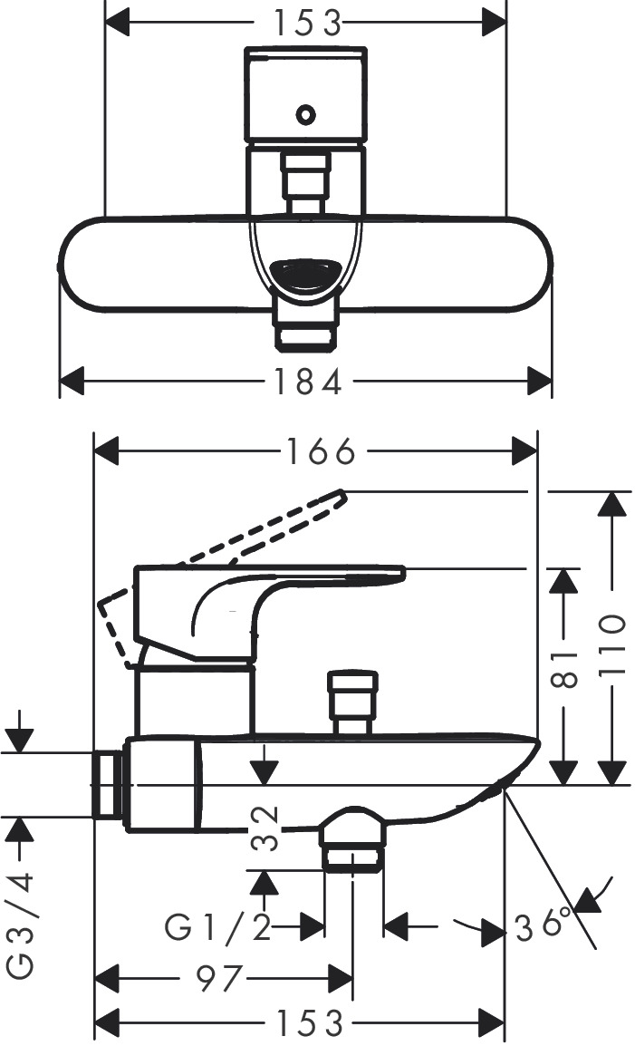 Hansgrohe Rebris e 1-gr opbouw badmengkraan hartafstand 15,3cm chroom
