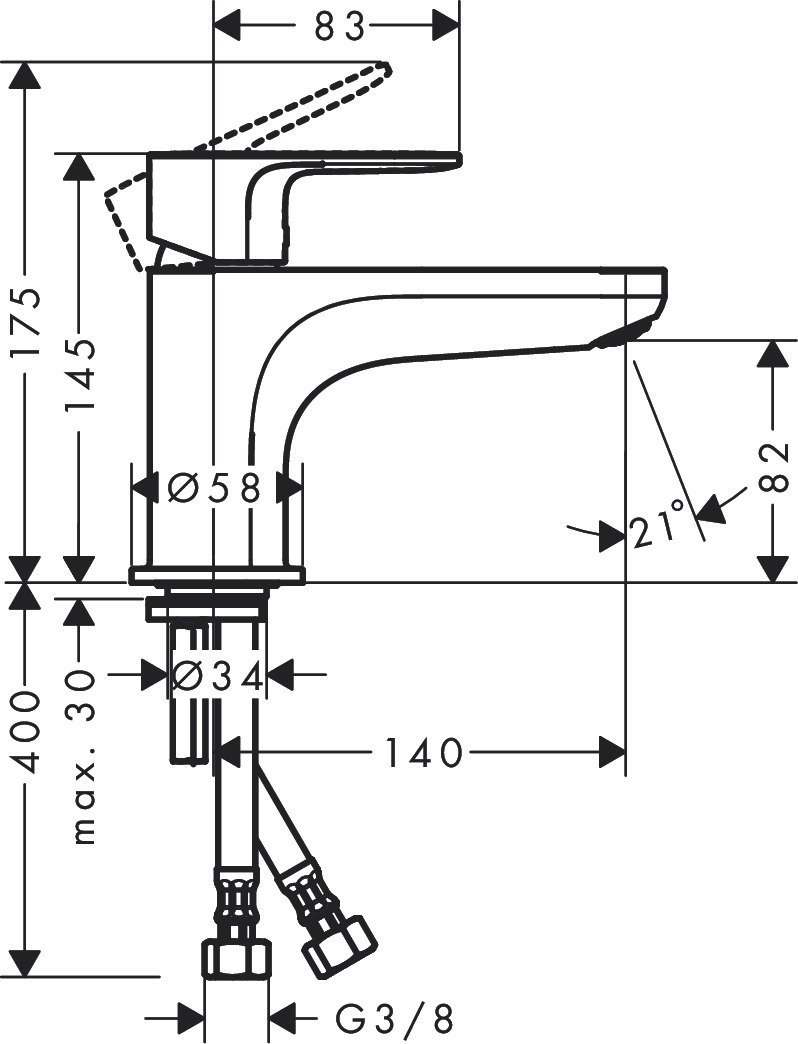 - Eenvoudige montage dankzij flexibele aansluitslangen (DN15)