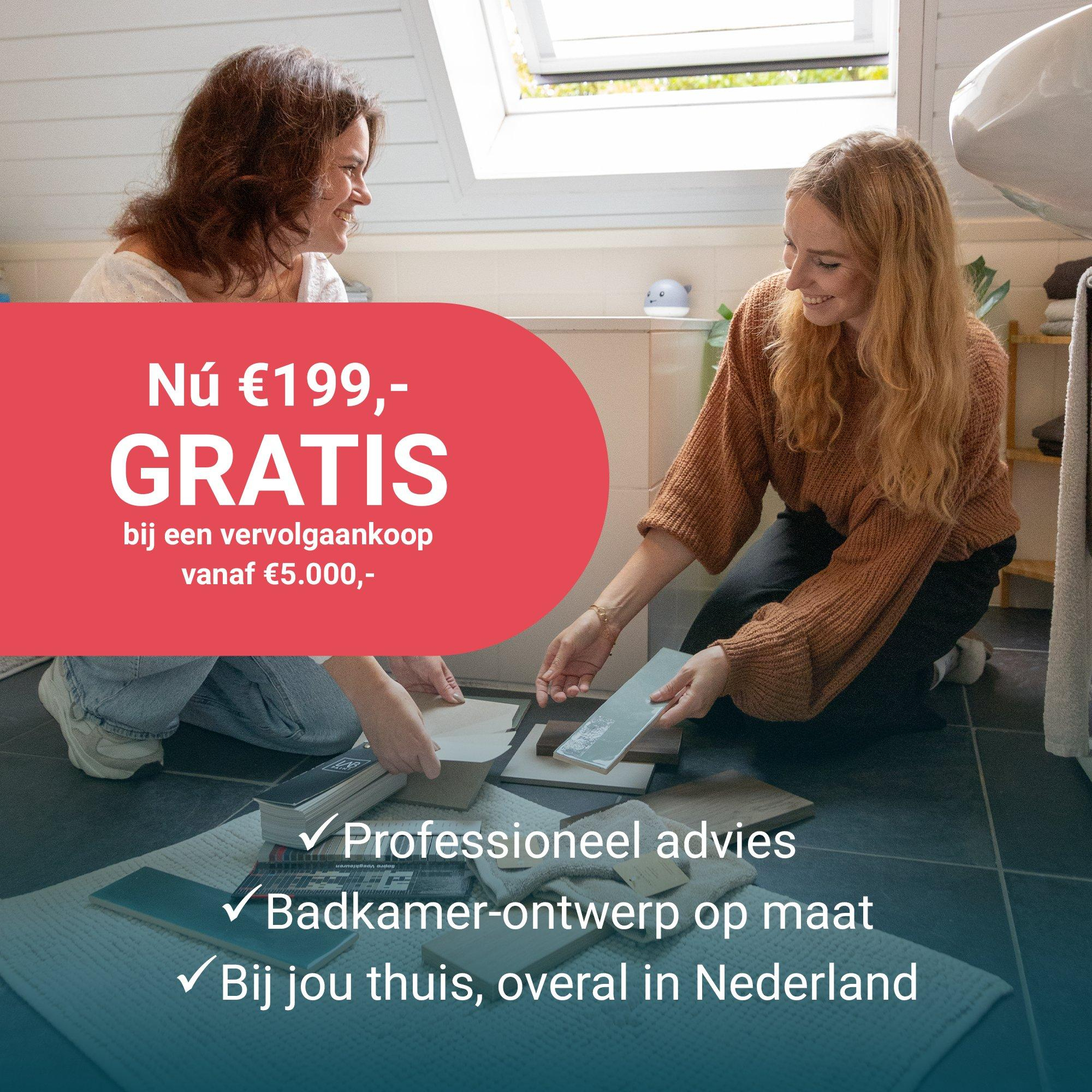 Besluit je na het advies een badkamer te bestellen vanaf €5.000? Dan wordt het bedrag van het advies als korting toegepast en is het advies gratis.