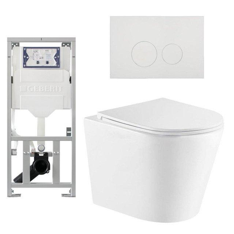 QeramiQ Dely Toiletset - 36.3x51.7cm - diepspoel - rimless - Geberit UP320 inbouwreservoir - met Burda frame - softclose toiletzitting - glans witte bedieningsplaat - ronde knoppen - wit glans