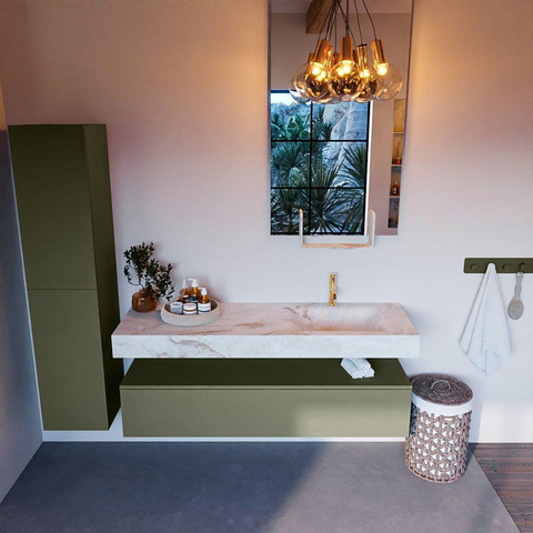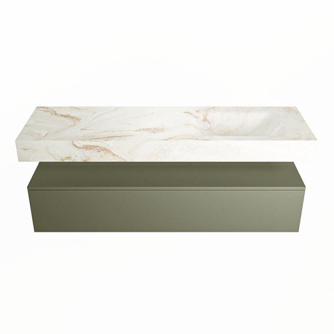 MONDIAZ ALAN - DLUX Badkamermeubelset - 150cm - onderkast - Army - 1 lade - vrijhangende wastafel - wasbak rechts - 1 kraangat - Frappe