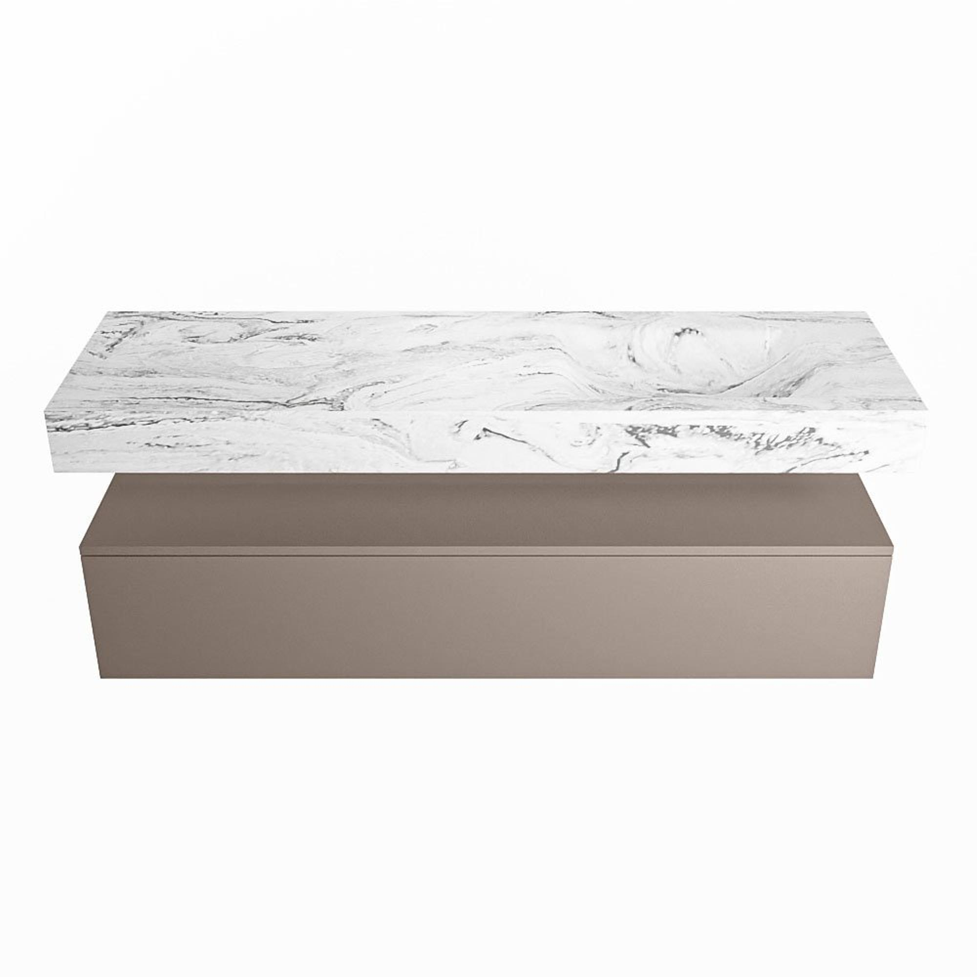 MONDIAZ ALAN - DLUX Badkamermeubelset - 150cm - onderkast - Smoke - 1 lade - vrijhangende wastafel - wasbak rechts - 1 kraangat - Glace
