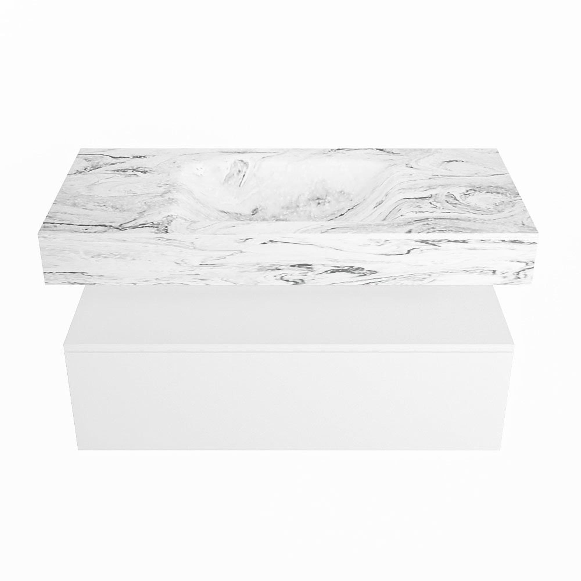 MONDIAZ ALAN - DLUX Badkamermeubelset - 100cm - onderkast - Talc - 1 lade - vrijhangende wastafel - wasbak midden - 1 kraangat - Glace