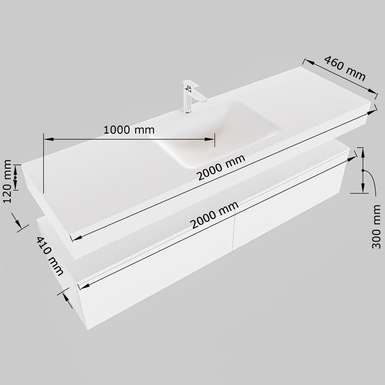 MONDIAZ ALAN - DLUX Badkamermeubelset - 200cm - onderkast - Cale - 2 lades - vrijhangende wastafel - wasbak midden - 1 kraangat - Glace