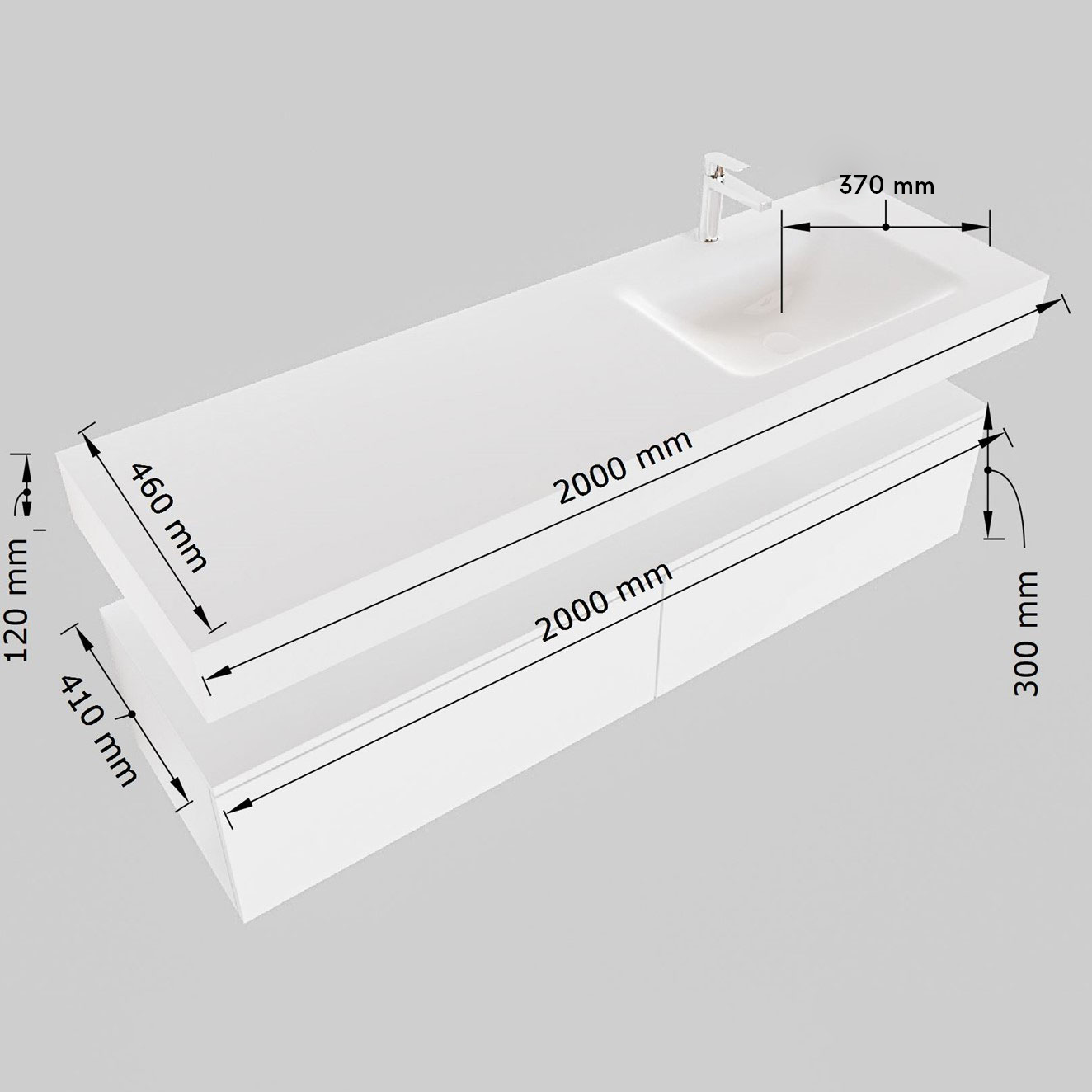 - Vrijhangende wastafel met wasbak rechts