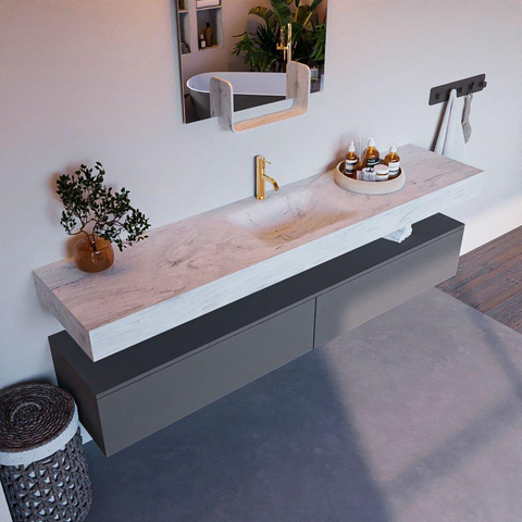 MONDIAZ ALAN - DLUX Badkamermeubelset - 200cm - onderkast - Plata - 2 lades - vrijhangende wastafel - wasbak midden - 1 kraangat - Opalo