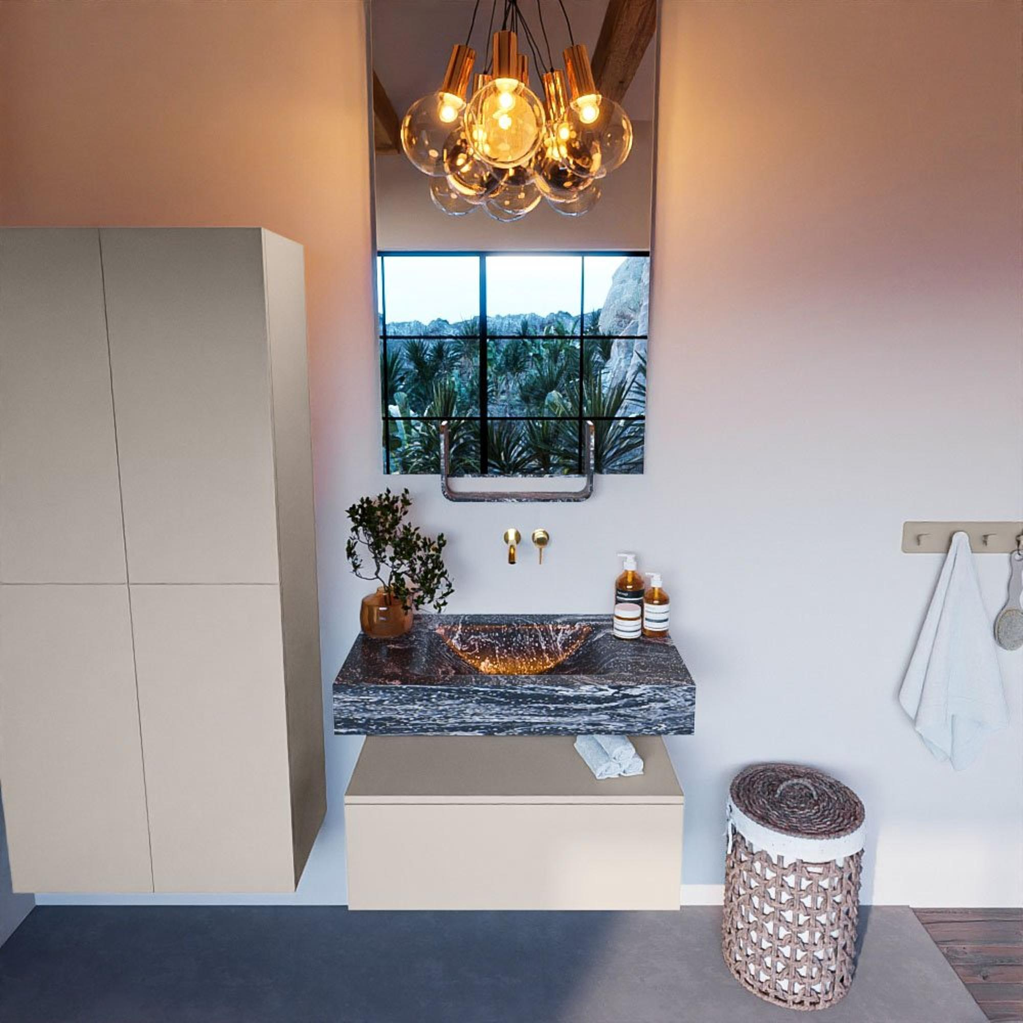 MONDIAZ ALAN - DLUX Badkamermeubelset - 80cm - onderkast - Linen - 1 lade - vrijhangende wastafel - wasbak midden - 0 kraangaten - Lava