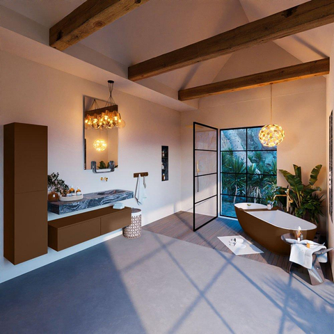 De MONDIAZ ALAN - DLUX Badkamermeubelset straalt stijl en klasse uit. Het rustieke design in combinatie met de vrijhangende wastafel zorgen voor een eigentijdse uitstraling. De subtiele details en de afwerking in de kleur Lava maken dit meubel tot een echte blikvanger in je badkamer. Het gebruik van hoogwaardige materialen zorgt ervoor dat dit meubel niet alleen mooi is, maar ook duurzaam en praktisch in gebruik.