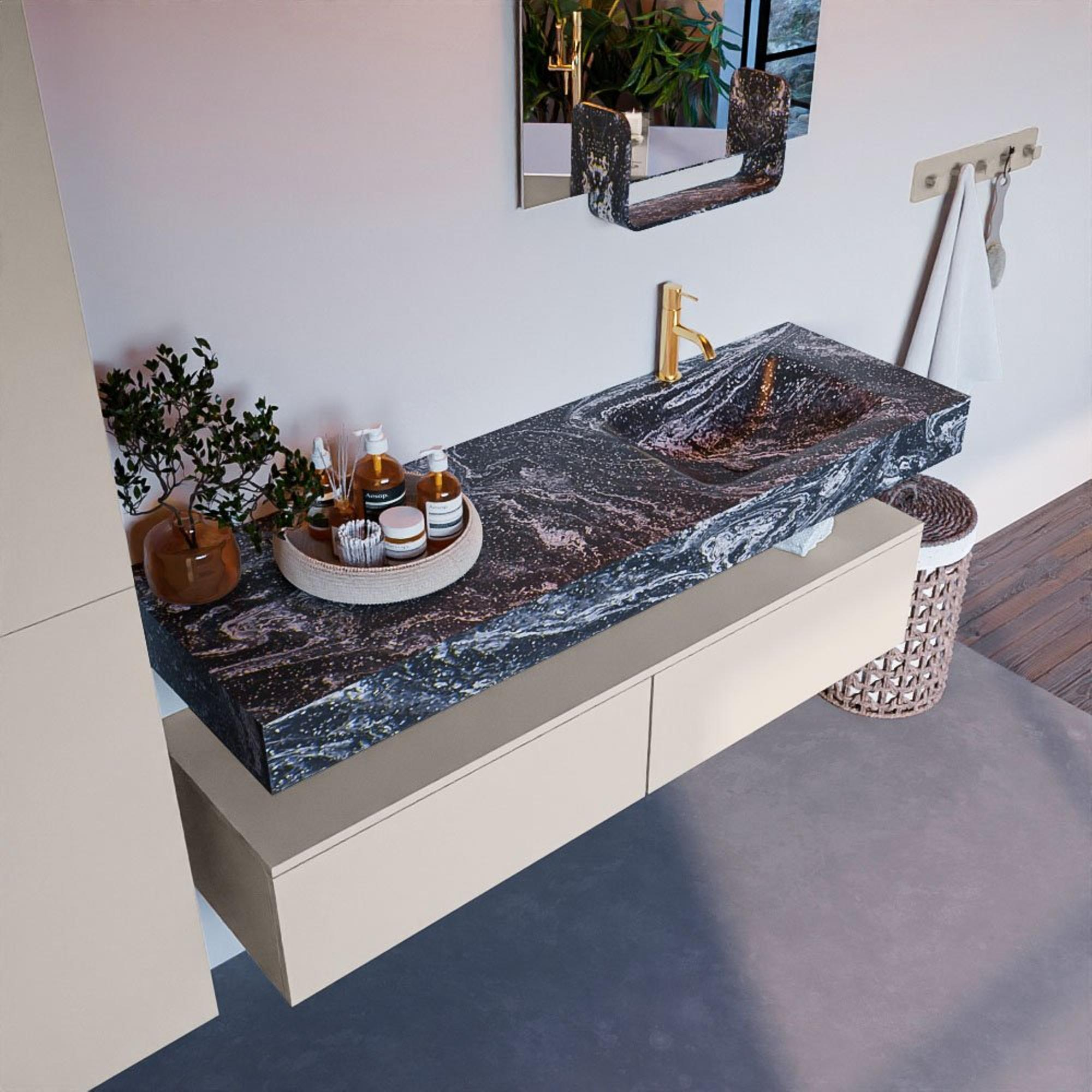 MONDIAZ ALAN - DLUX Badkamermeubelset - 150cm - onderkast - Linen - 2 lades - vrijhangende wastafel - wasbak rechts - 1 kraangat - Lava