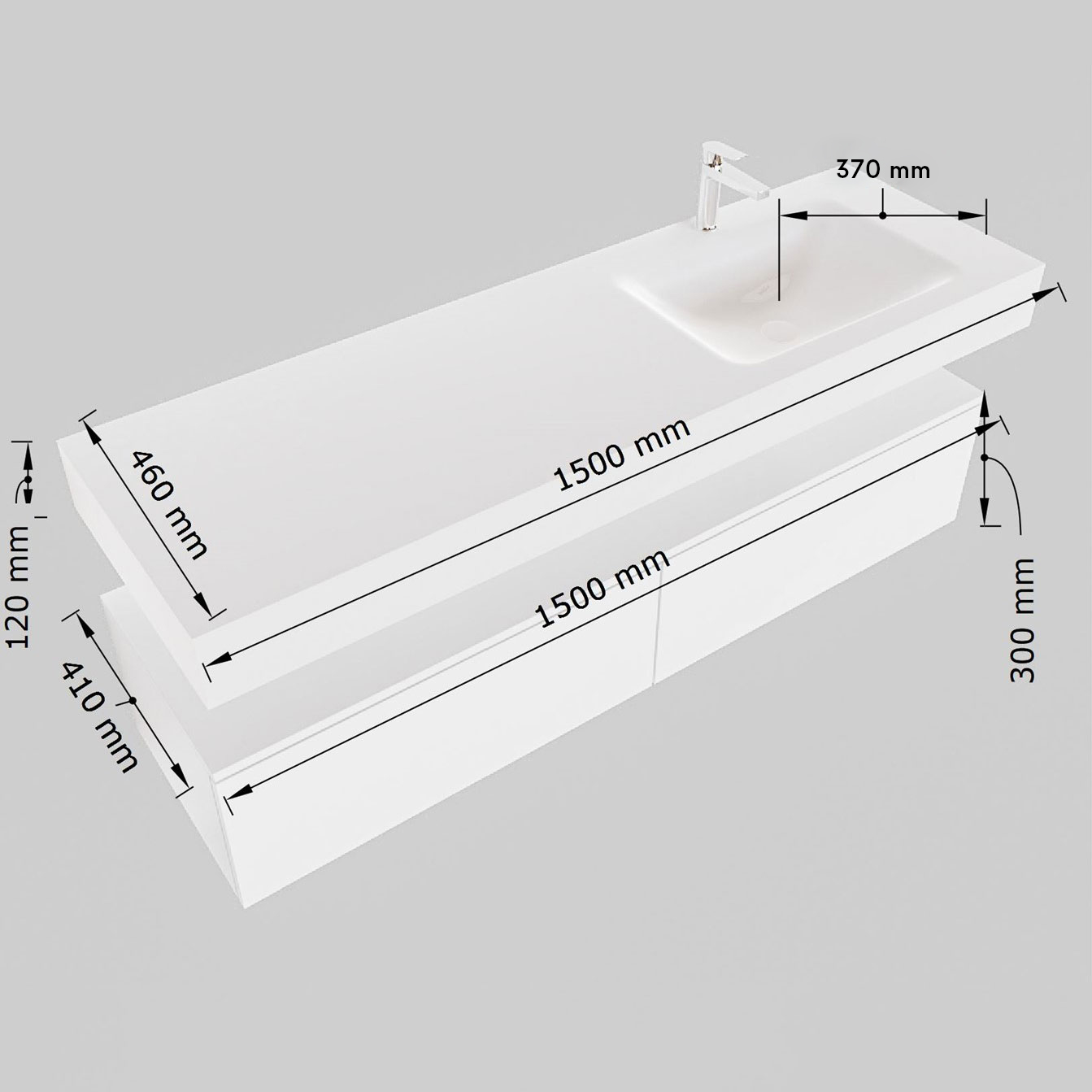Naast zijn esthetische waarde is dit badkamermeubelset ook uiterst functioneel. De onderkast met 1 lade biedt voldoende ruimte om al jouw badkamerspullen georganiseerd op te bergen. Het kraangat is handig geplaatst voor gemakkelijke toegang, terwijl de lava-afwerking duurzaamheid en kwaliteit garandeert.