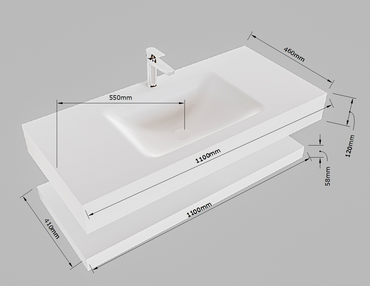 Dit badkamermeubelset is niet alleen stijlvol, maar ook zeer functioneel. Met een lengte van 110cm biedt het voldoende opbergruimte voor al je badkamerbenodigdheden. De vrijhangende wastafel zorgt voor een gemakkelijke reiniging van de vloer eronder en de wasbak in het midden zorgt voor een handige indeling van de ruimte.