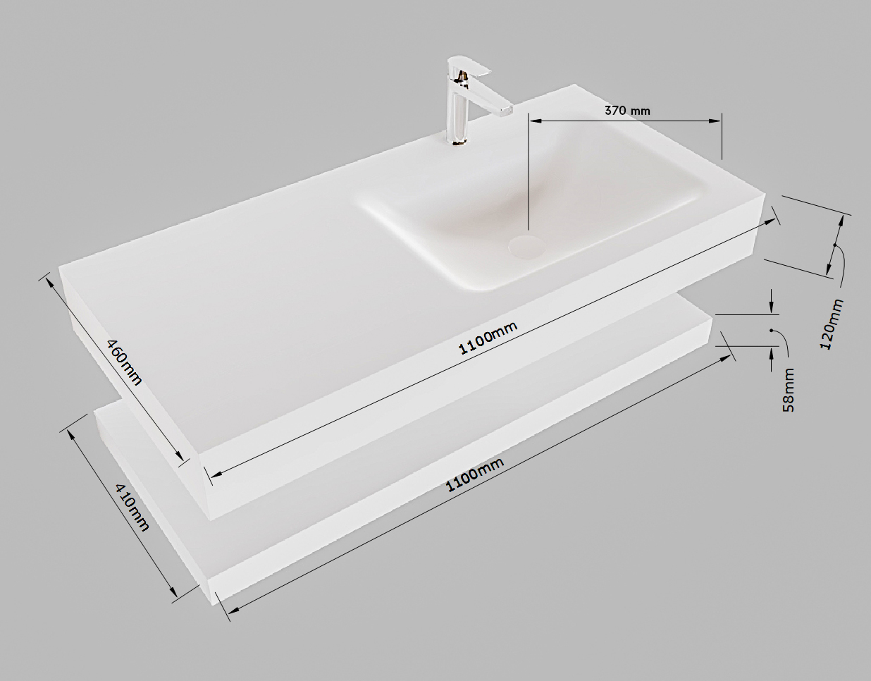 Dit badkamermeubel is niet alleen mooi, maar ook zeer functioneel. Met een breedte van 110cm biedt het voldoende opbergruimte voor al je badkamerspullen. Het kraangat aan de rechterkant zorgt voor een handige indeling, terwijl de vrijhangende wastafel een ruimtelijk gevoel creëert. De hoogwaardige materialen garanderen duurzaamheid en gebruiksgemak.
