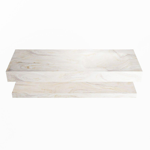 MONDIAZ ALAN - DLUX Badkamermeubelset - 130cm - planchet - Ostra - vrijhangende wastafel - wasbak rechts - 0 kraangaten - Ostra