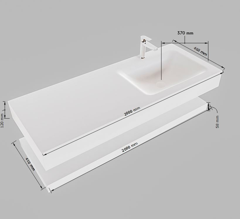 Dit badkamermeubelset combineert stijl met functionaliteit. Met een planchet voor extra opbergruimte en een wasbak aan de rechterkant, biedt het voldoende ruimte voor dagelijkse benodigdheden. De vrijhangende wastafel zorgt voor een gemakkelijke reiniging van de vloer eronder, terwijl de 0 kraangaten een gestroomlijnd uiterlijk garanderen. Dit meubelstuk is niet alleen mooi, maar ook praktisch in gebruik.