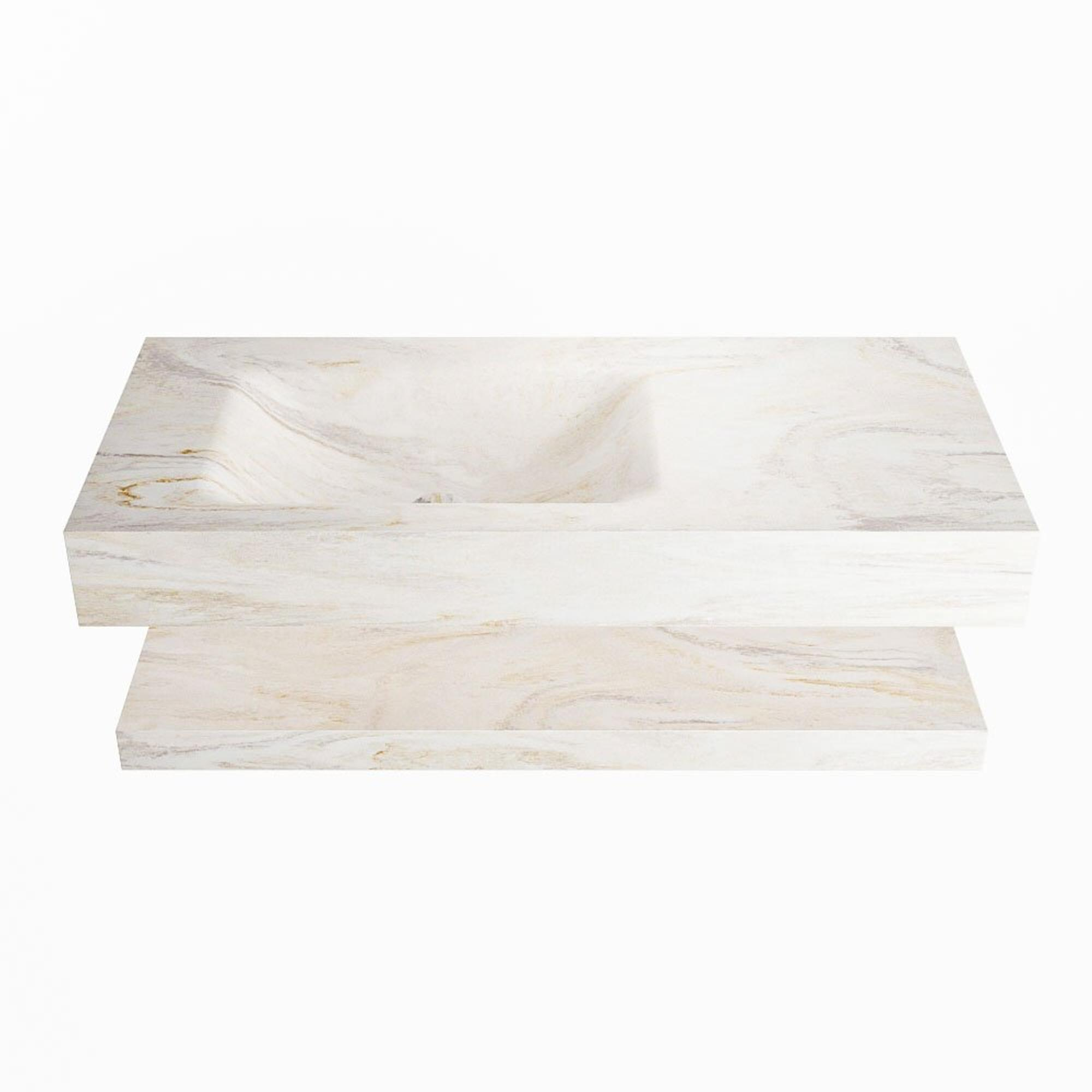 MONDIAZ ALAN - DLUX Badkamermeubelset - 100cm - planchet - Ostra - vrijhangende wastafel - wasbak links - 1 kraangat - Ostra