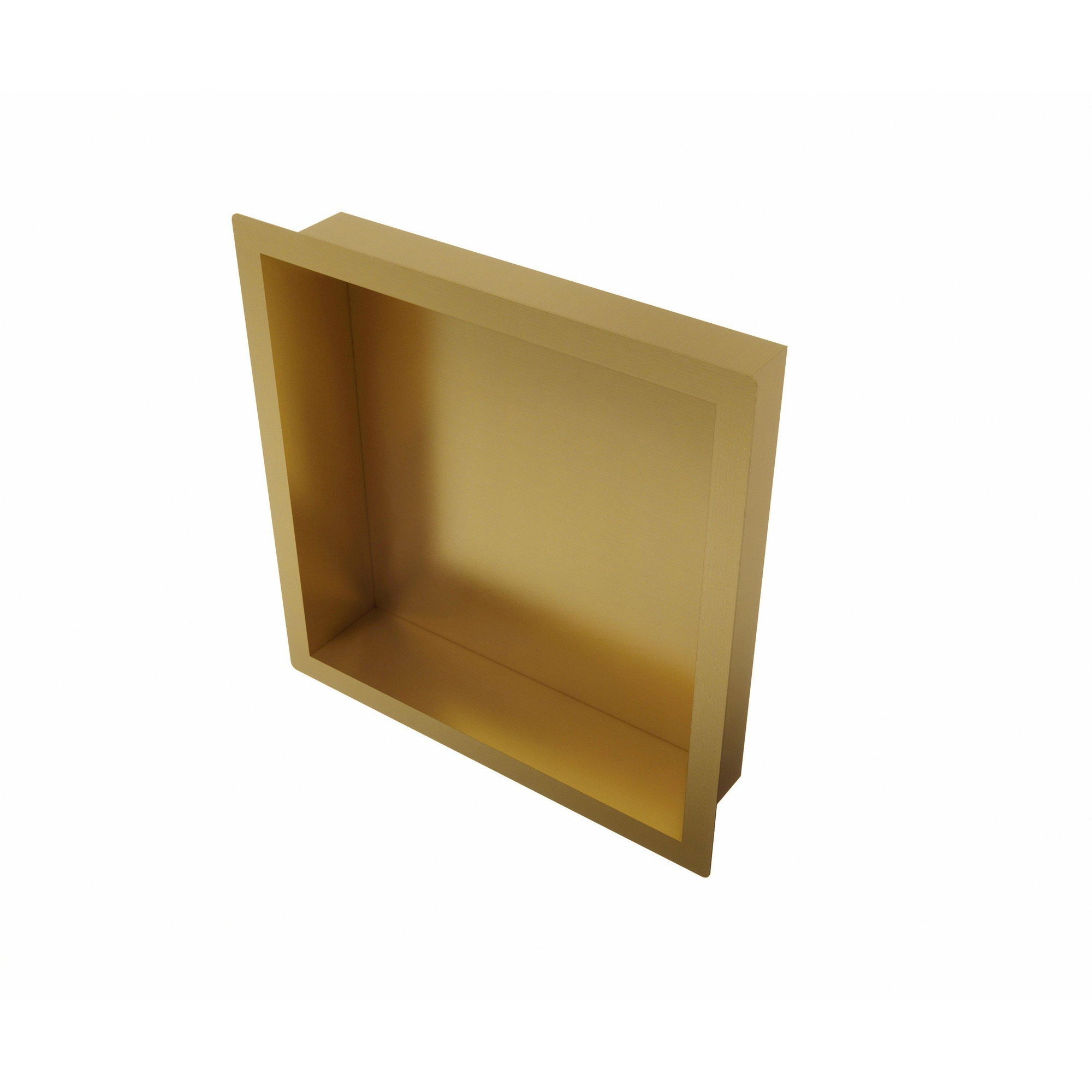 Stijlvol en functioneel ontwerp Met zijn goudkleurige afwerking voegt deze inbouwnis een warme, elegante touch toe aan je badkamer. De compacte afmeting van 30x30 cm maakt hem geschikt voor zowel kleine als grotere badkamers, terwijl de diepte van 7 cm voldoende ruimte biedt voor flessen en accessoires.