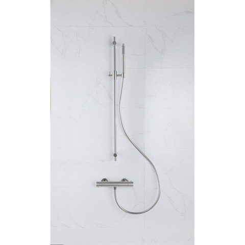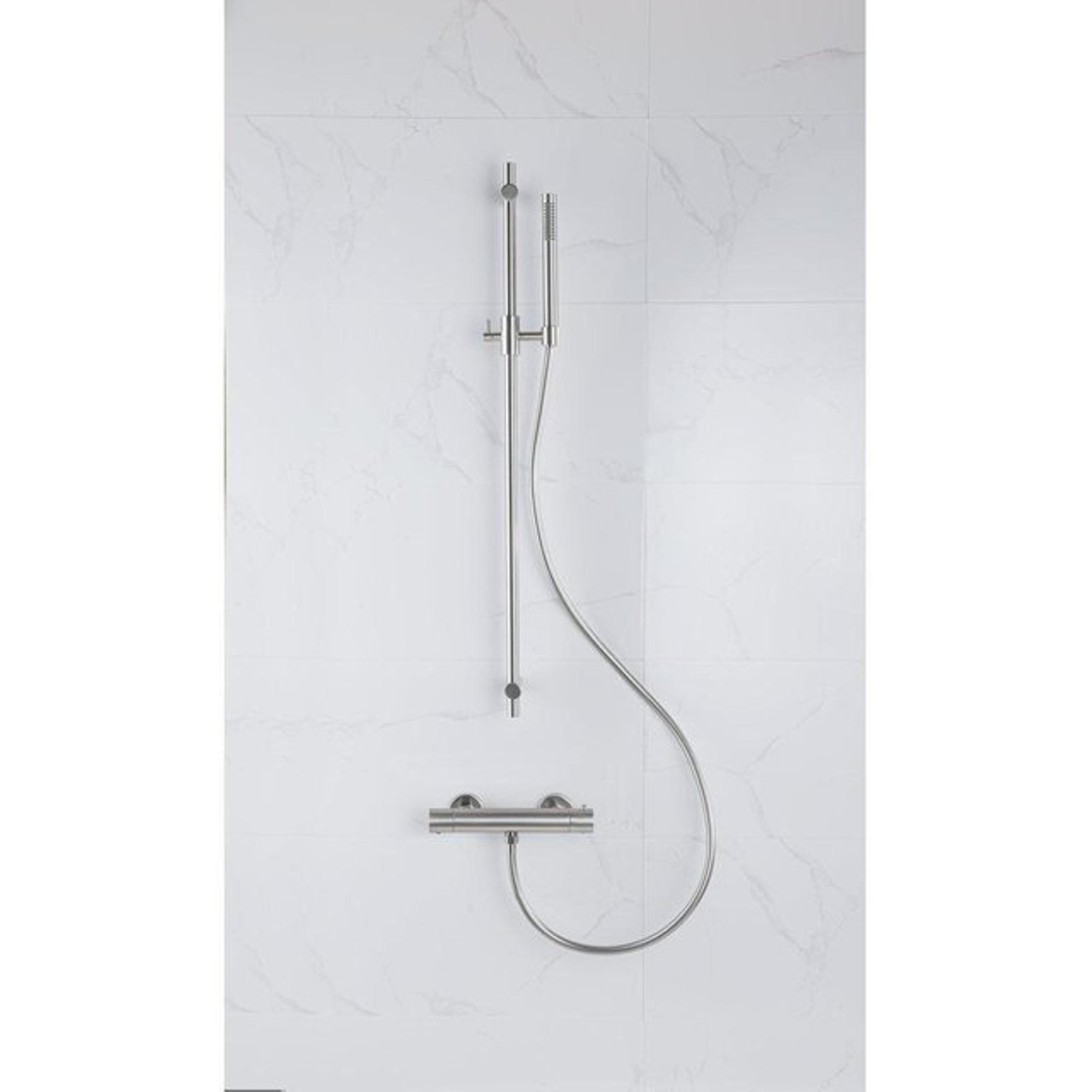 Fortifura Calvi douchekraan met glijstangset met staafhanddouche, metalen doucheslang Geborsteld RVS PVD (RVS)