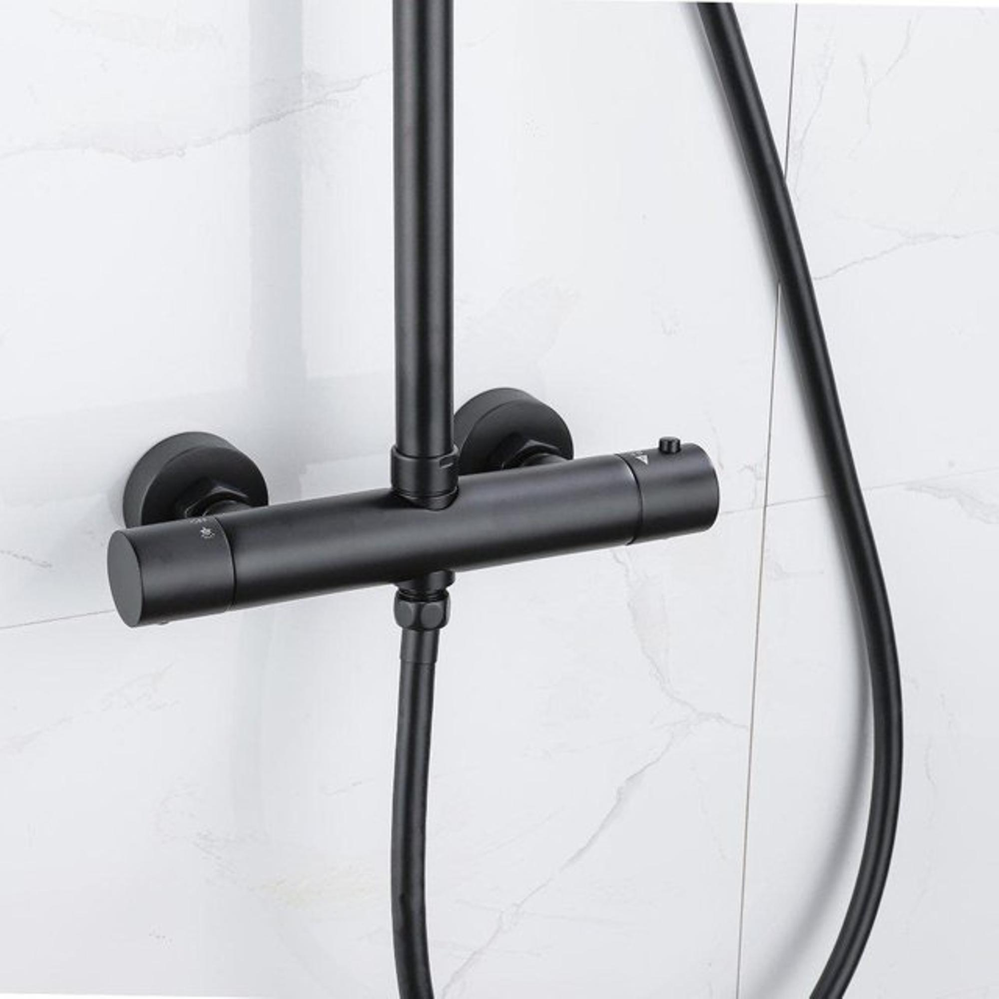 Fortifura Calvi douchekraan met glijstangset met ronde handdouche, gladde doucheslang mat zwart