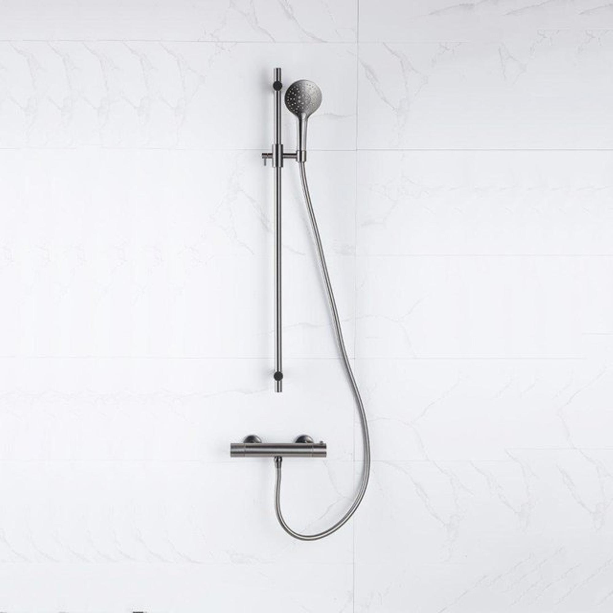 Fortifura Calvi douchekraan met glijstangset met ronde handdouche, metalen doucheslang Geborsteld Gunmetal PVD