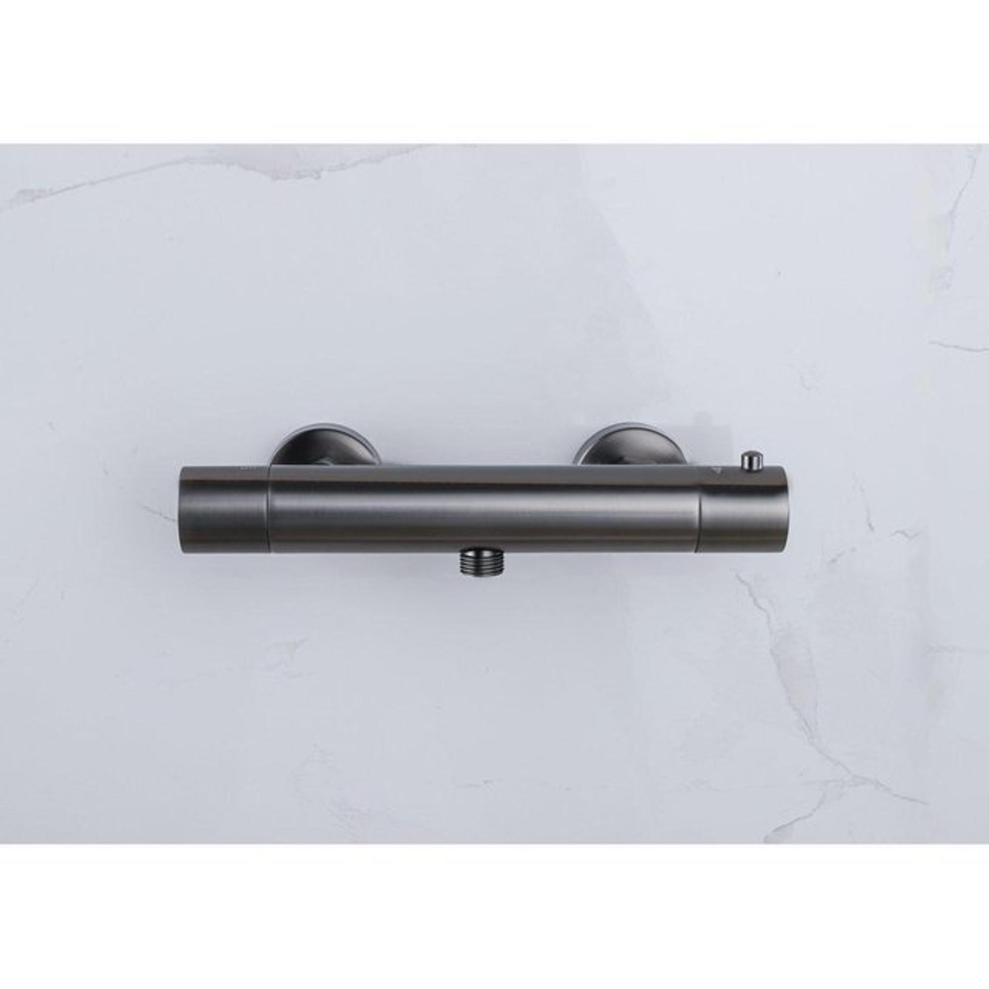 Gunmetal sanitair wordt steeds populairder. De stoere, bijna mat zwarte look, geeft de ruimte direct een stoere en luxe uitstraling. Hierdoor past deze doucheset dan ook goed in een modern of industrieel interieur. Door de unieke samenstelling van gunmetal is de toplaag ijzersterk, en zijn kalk en zeepresten nauwelijks zichtbaar. Met deze Fortifura Calvi doucheset haal je een echte blikvanger in huis!