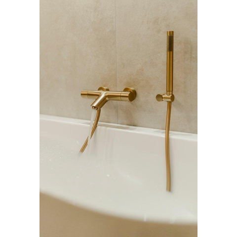 Fortifura Calvi Thermostatische badkraan met staafhanddouche, handdouchehouder en gladde doucheslang Geborsteld Messing PVD (Goud)