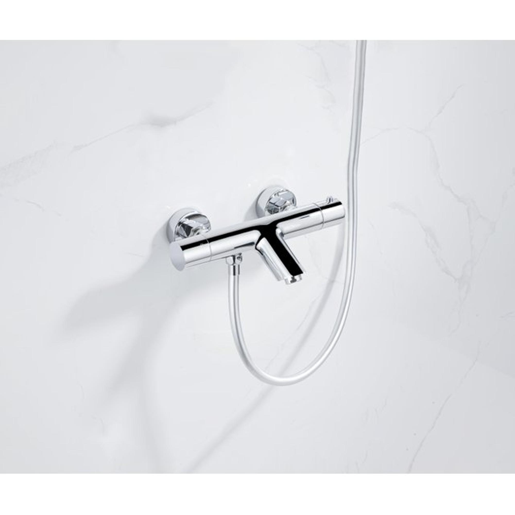 Fortifura Calvi Thermostatische badkraan met ronde handdouche, handdouchehouder en gladde doucheslang chroom