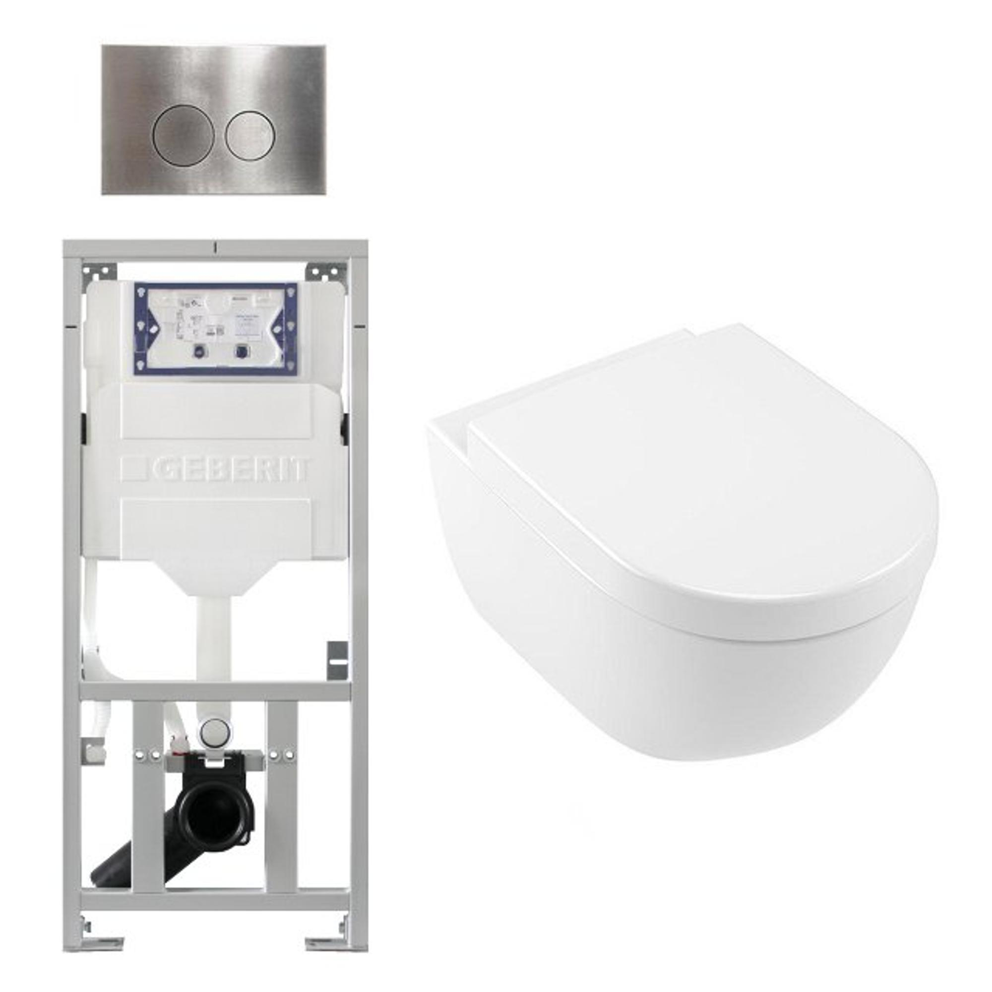 Villeroy Boch Subway 2.0 DirectFlush Toiletset - softclose - geberit reservoir - qeramiq bedieningsplaat ronde knoppen - RVS look wit
