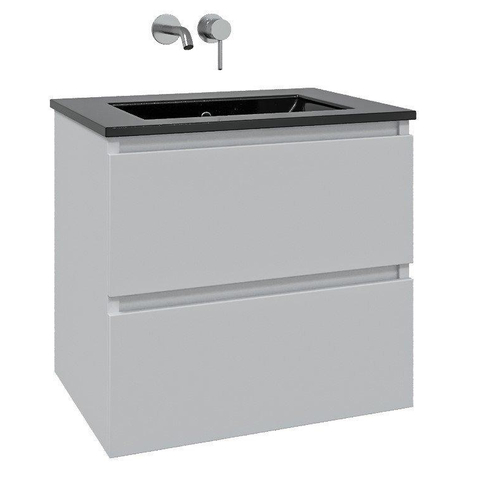 Saniclass Chaci Badkamermeubelset - 60x46x57cm - keramische wastafel zwart - 1 wasbak - zonder kraangaten - 2 lades - rechthoekige spiegel - mat wit