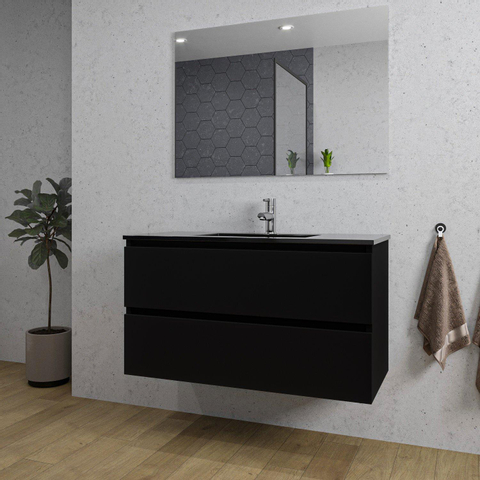 Saniclass Chaci Badkamermeubelset - 100x46x55cm - keramische wastafel zwart - 1 wasbak - 1 kraangat - 2 lades - rechthoekige spiegel - mat zwart