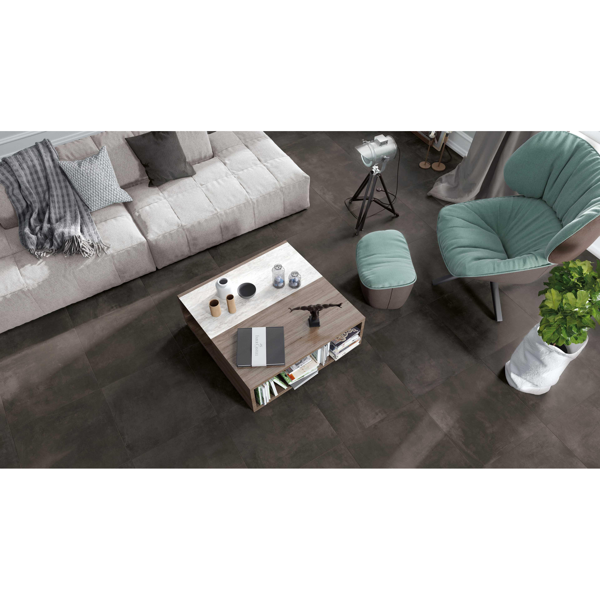Stijlvol Met een verfijnde stijl en tijdloze uitstraling voegt deze vloertegel een stijlvol element toe aan je badkamer. Of je nu een kleine badkamer hebt die je ruimer wilt laten lijken of een grote badkamer die een extra vleugje luxe nodig heeft, deze tegel past perfect in elke ruimte. De donkere kleur creëert een gevoel van warmte en gezelligheid, waardoor je badkamer een uitnodigende sfeer krijgt.