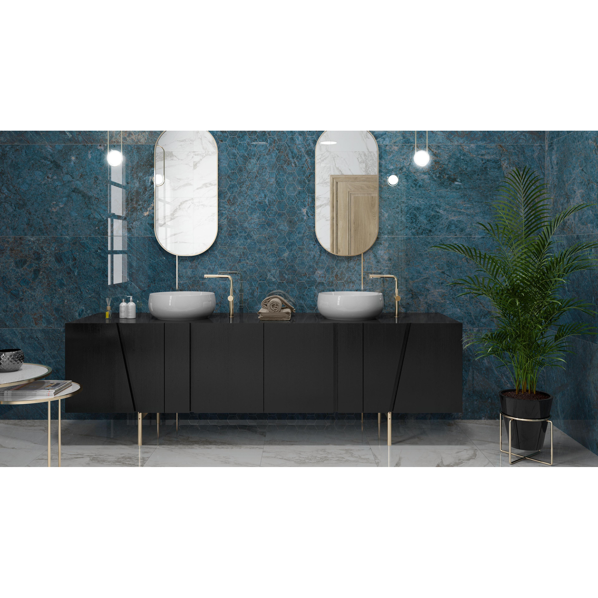 Indulge in the timeless elegance of the Douglas Jones Marbles Vloertegel 600X1200 LX Kionia Azzurr.10,5mm Glans. This exquisite floor tile exudes sophistication and luxury, making it the perfect choice for elevating your bathroom or living space. The sleek design and glossy finish add a touch of glamour to any room, creating a chic and stylish ambiance. Whether you're renovating your home or designing a new space, this vloertegel is sure to impress with its beauty and charm.Durable