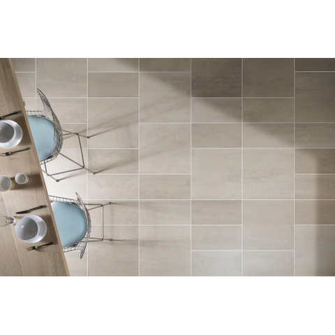 Het langwerpige strookformaat van circa 10 x 60 cm geeft je enorm veel creatieve vrijheid. Leg je de tegels in halfsteensverband, dan ontstaat een speels, dynamisch patroon dat perfect past bij een moderne badkamer. Kies je voor een rechte verbinding, dan oogt de ruimte extra rustig en minimalistisch. De lichte kleur uit de Terra Tones-serie is subtiel genuanceerd, waardoor je vloer of wand niet vlak oogt maar juist een verfijnd, architectonisch karakter krijgt. Juist die combinatie van lengteformaat, rustige tint en strakke lijnen maakt deze tegel ideaal voor wie een hotelchique sfeer wil creëren, zonder dat de ruimte druk of onrustig wordt.