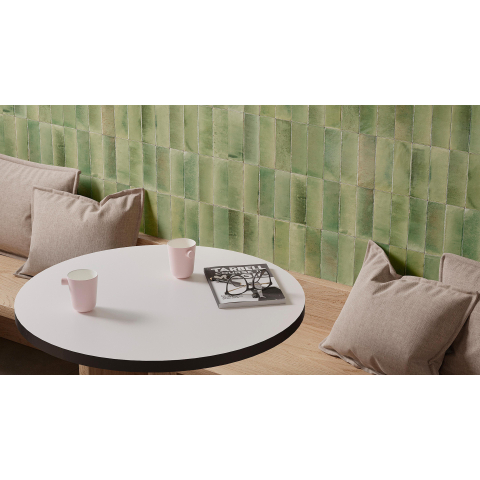 De glanzende afwerking en zichtbare kleurnuances zorgen voor een rijke, bijna artisanale uitstraling. Het oppervlak vangt het licht vanuit verschillende hoeken, waardoor je wand over de dag heen subtiel van sfeer verandert. Dat geeft meteen een luxueuze hotelgevoel, zelfs in een compacte badkamer of toiletruimte. De kleur Giada is een verfijnde, groene tint die rust en frisheid uitstraalt, perfect om een wellness-achtige sfeer te creëren of een statementmuur te maken achter het bad, de wastafel of in de douche. Door de variatie tussen de afzonderlijke tegels oogt het resultaat nooit vlak of saai, maar juist levendig en uniek, alsof je een maatwerk wand hebt laten maken.
