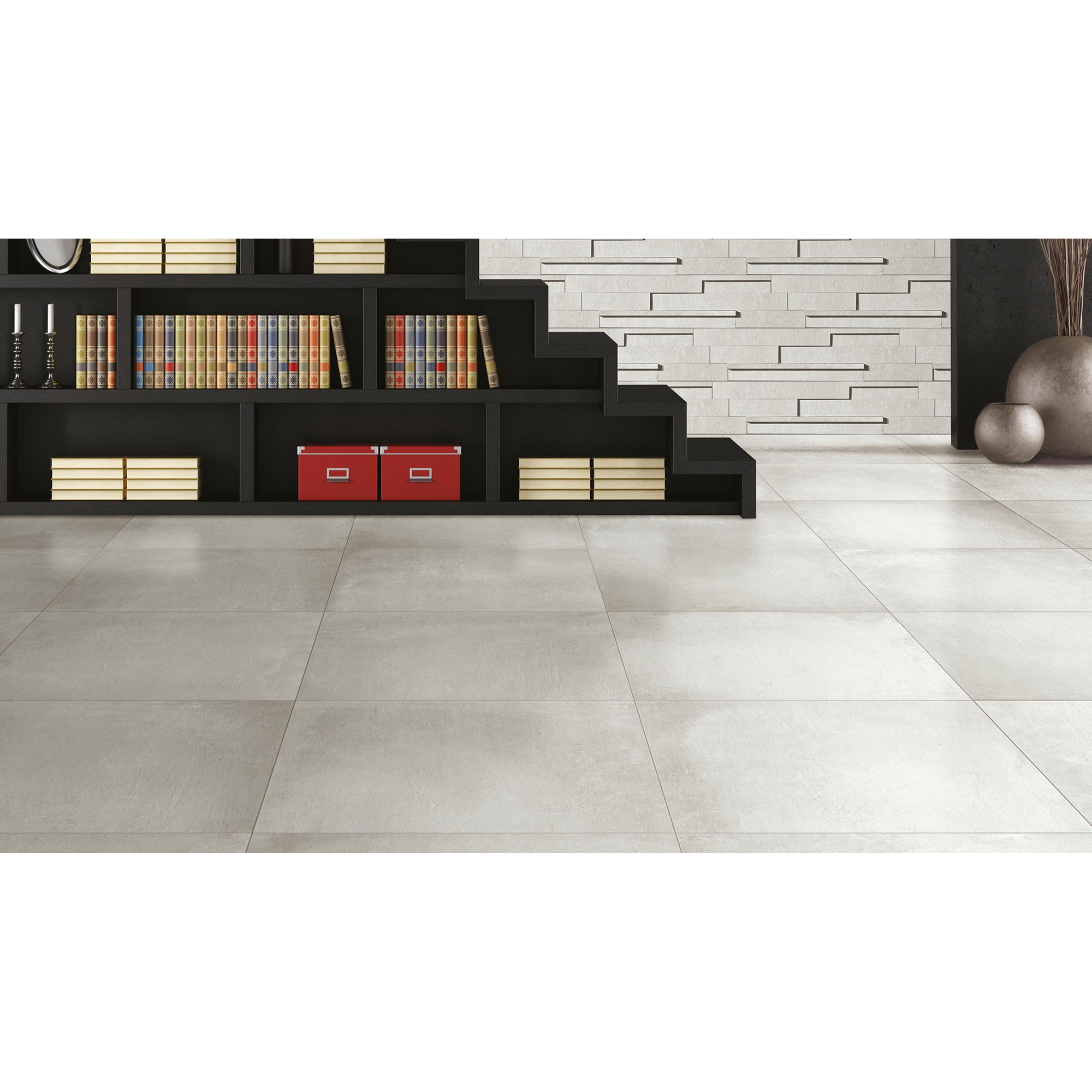 Deze porseleinen vloertegel is ontwikkeld voor intensief gebruik en daardoor zeer geschikt voor drukke huishoudens. De matte, vlakke toplaag is comfortabel in het dagelijks gebruik, laat minder snel vlekken en vingerafdrukken zien en is eenvoudig schoon te houden met normale onderhoudsproducten voor keramische tegels. De R10 antislipwaarde geeft extra grip, wat prettig is in natte ruimtes zoals de badkamer of entree, maar ook rondom een vrijstaand bad of in de keuken waar water en zeep op de vloer kunnen komen. Omdat de tegel zowel als vloer- als wandtegel toepasbaar is, kun je met één en hetzelfde materiaal een mooie, doorlopende look creëren: bijvoorbeeld de vloer doorleggen in de douche of een stoere betonlook achterwand maken achter het bad of het toilet.