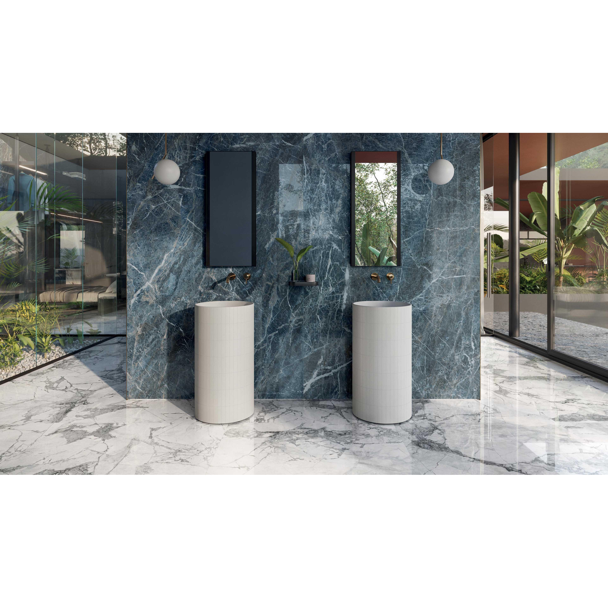 Ervaar de weelde en grandeur van deze vloer- en wandtegel die een sfeer van luxe en exclusiviteit uitstraalt. De verfijnde marmeren uitstraling van deze tegel voegt een vleugje elegantie toe aan elke ruimte, terwijl de glanzende afwerking een subtiel vleugje glamour toevoegt aan je interieur.